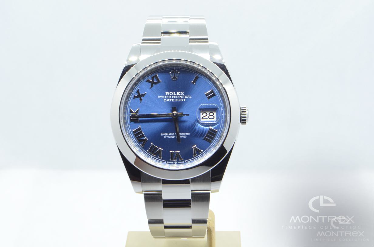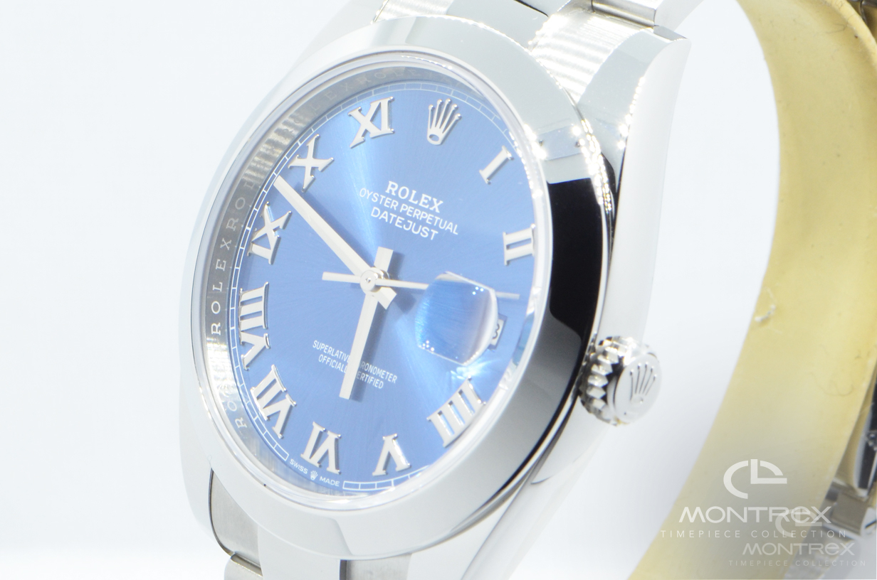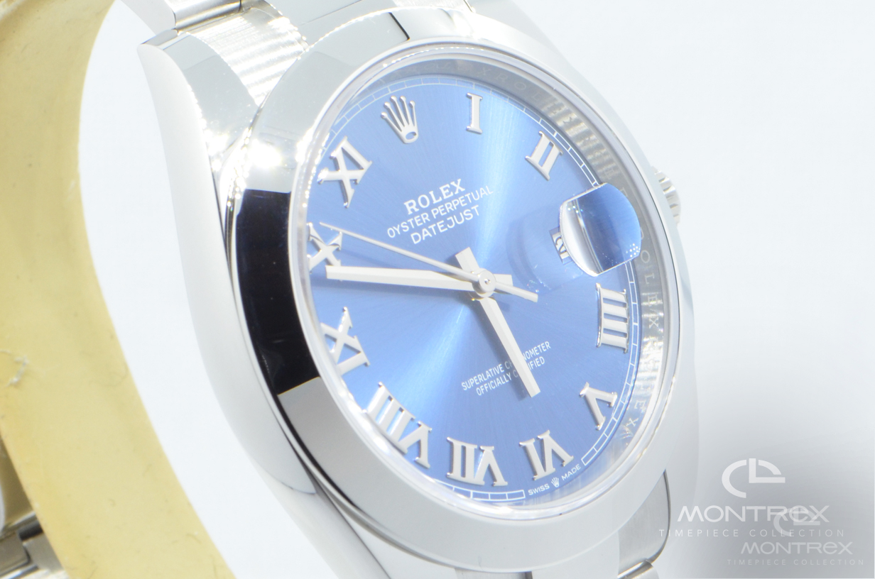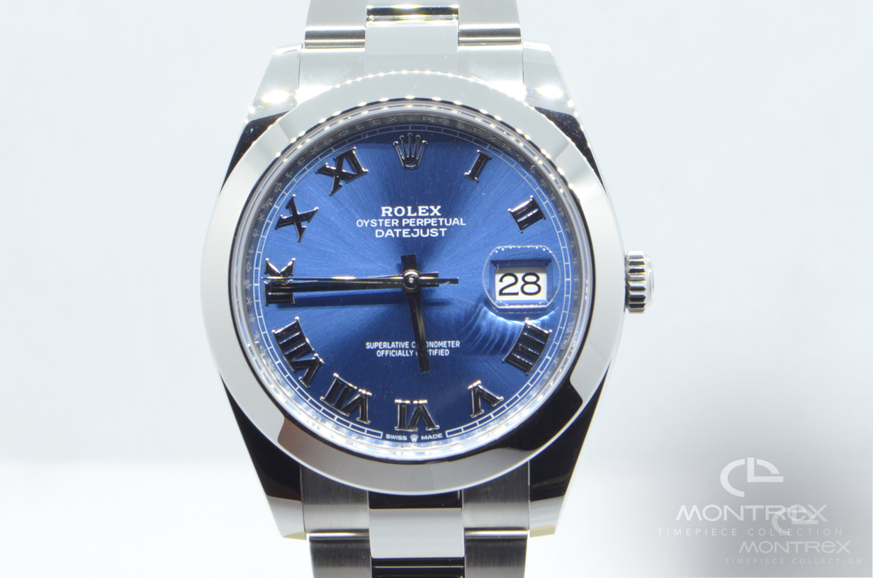 Rolex Datejust 41 référence 126300, jamais portée, cadran bleu, ensemble complet avec 5 ans de garantie du fabricant.